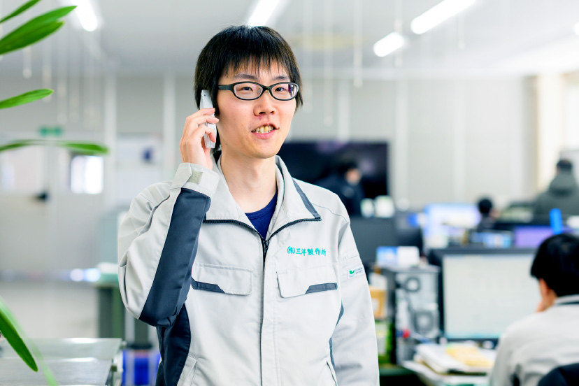 業務三課に配属されて3年、まだまだ営業としても自分は発展途上。これまではモノづくりの知識を生かして「つなぎ役」に徹してきましたが、会社の経営をより盤石なものにするため、これからは新規顧客の開拓にも積極的に取り組んでいきたいですね。