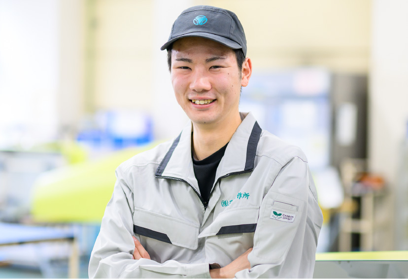 一口に航空機部品の組み立てといっても、その工程は数百に及ぶんです。もちろん最初から全てを自分ができるわけではありません。私が組み立てを行っているのは、両翼の下部にあるカバー。簡単なことから始めて、1年ぐらいかけてようやく全ての工程を一通り自分の力でできるようになりました。一つ一つの工程を積み重ねていくごとに、徐々に完成像に近づいていく姿を見るのがなによりも嬉しく、初めて自分1人で組み立てが完了したときの感動はひとしお。航空機部品の組み立てという仕事に、大きな責任感を抱いています。体調管理に気を遣い、常にベストコンディションで仕事に臨みたいですね。