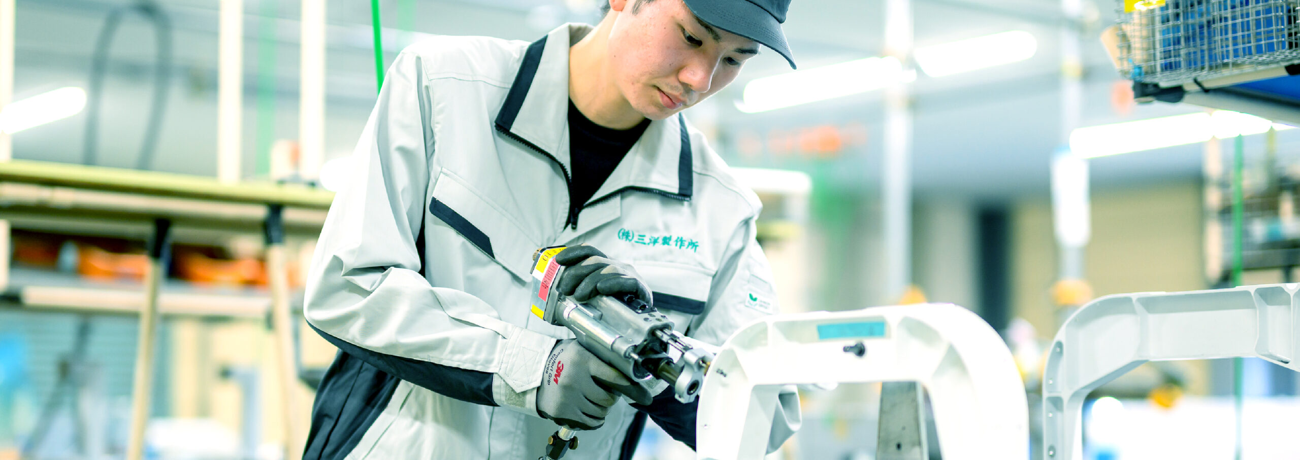 製品を安全・効率的に生産するため工程を設計し、既存の生産工程を見直し・改善する職種。当社では、新規製品の立ち上げに伴うラインの設計、生産体制の構築、機械・設備の保守、治工具の設計等まで担当し、製造の根幹を担います。社内の各部門と広く関わり、幅広い知識が身に付くため、技術者として成長できる機会が多い職種です。